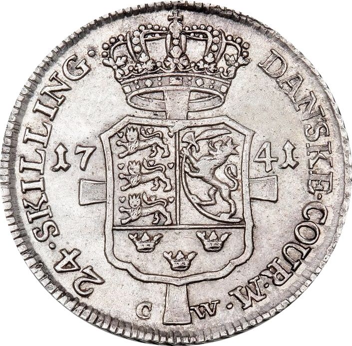Назва: 24 скіллінги данського — Крістіан VI (тип монограми)