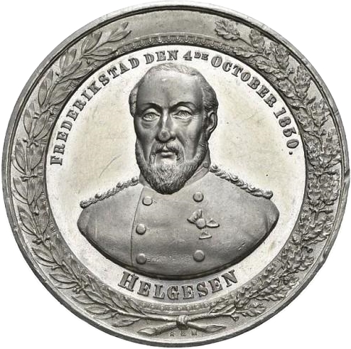 Опис: Повернений до глядача бюст командира Гельгесена у парадній формі всередині кола, оточеного квітковим вінком.