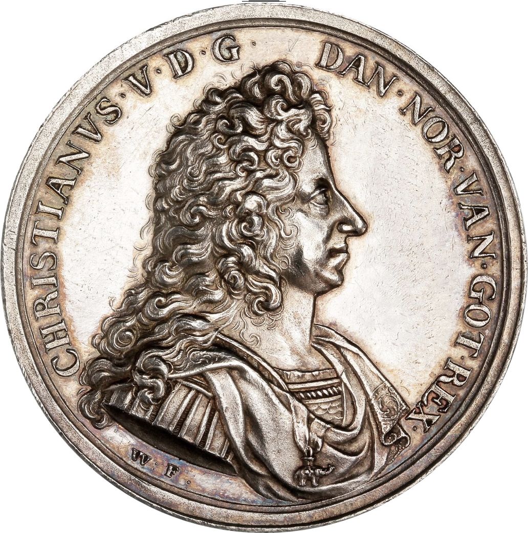 Опис: Бюст короля Крістіана V у обладунках та плащі з довгим кучерявим волоссям.