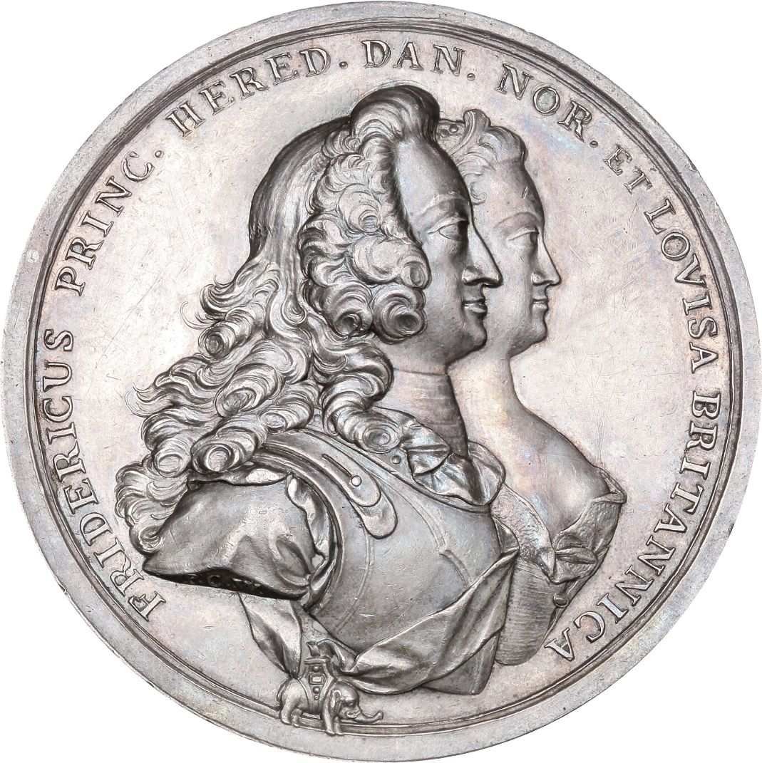 Опис: З'єднані бюсти кронпринца Фредеріка та його дружини принцеси Луїзи Великої Британії.