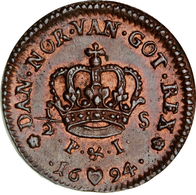 ½ скіллінг — Крістіан V 1693 – 1696 Данія