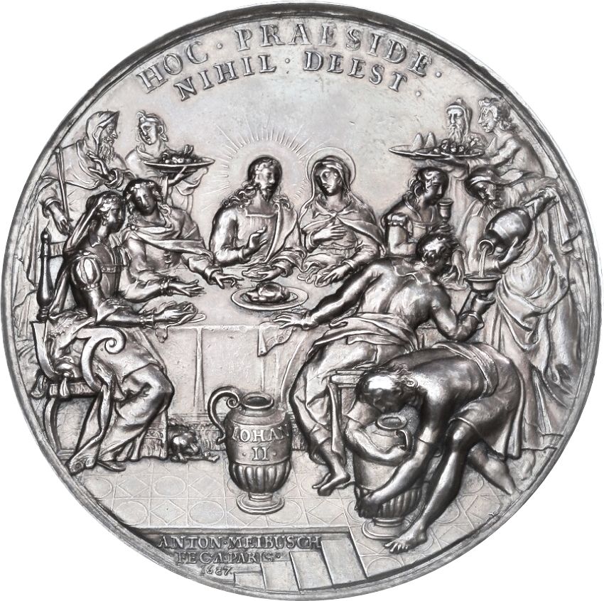 Опис: Сцена з весілля в Кані Галілейській, як описано в Євангелії від Івана, розділ 2 (як написано на великій вазі на передньому плані).