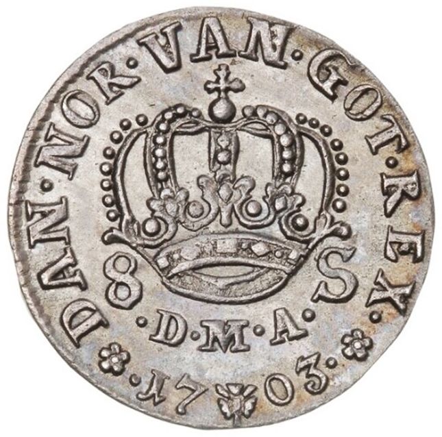 Назва: 8 скіллінг данського — Фредерік IV (тип I)