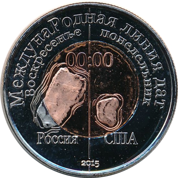 Опис: Великий та Малий острови Діомед з вертикальним розривом лінії зміни дат.