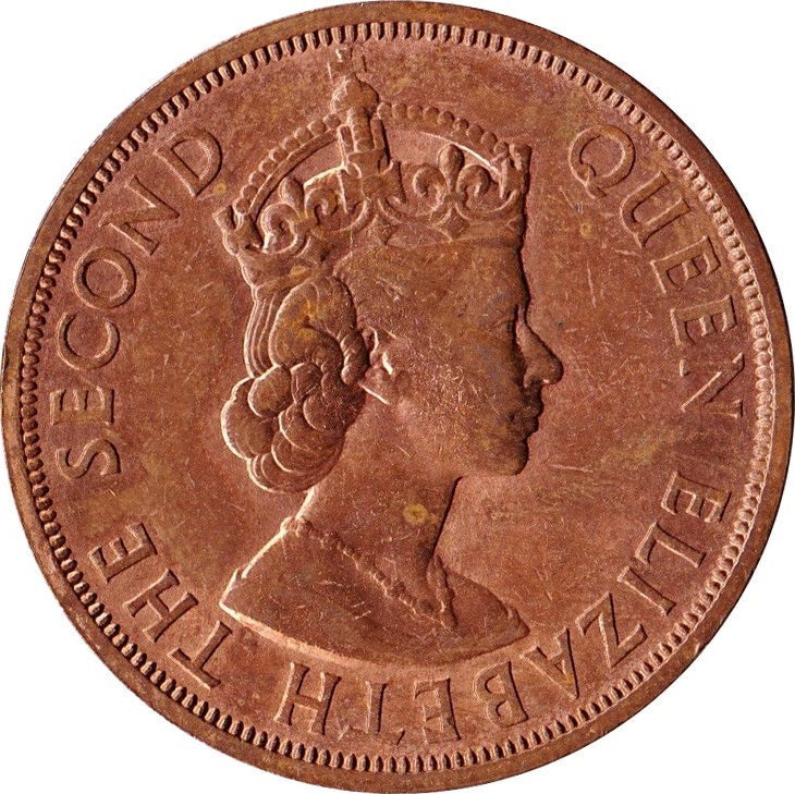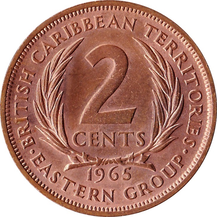 2 центи — Єлизавета II (1-й портрет) 1955 – 1965 Східнокарибські держави
