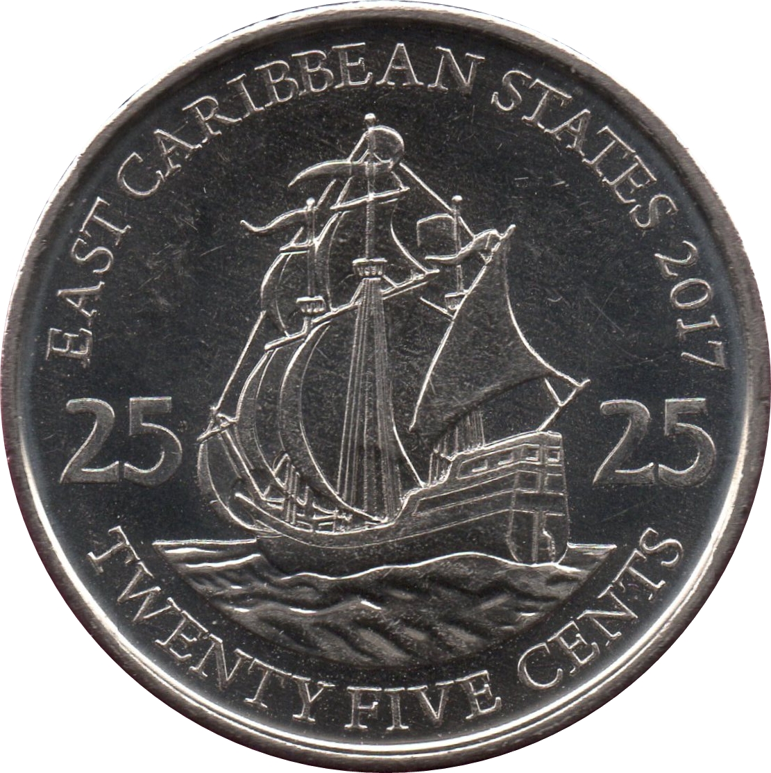 25 центів — Єлизавета II (4-й портрет) 2010 – 2022 Східнокарибські держави