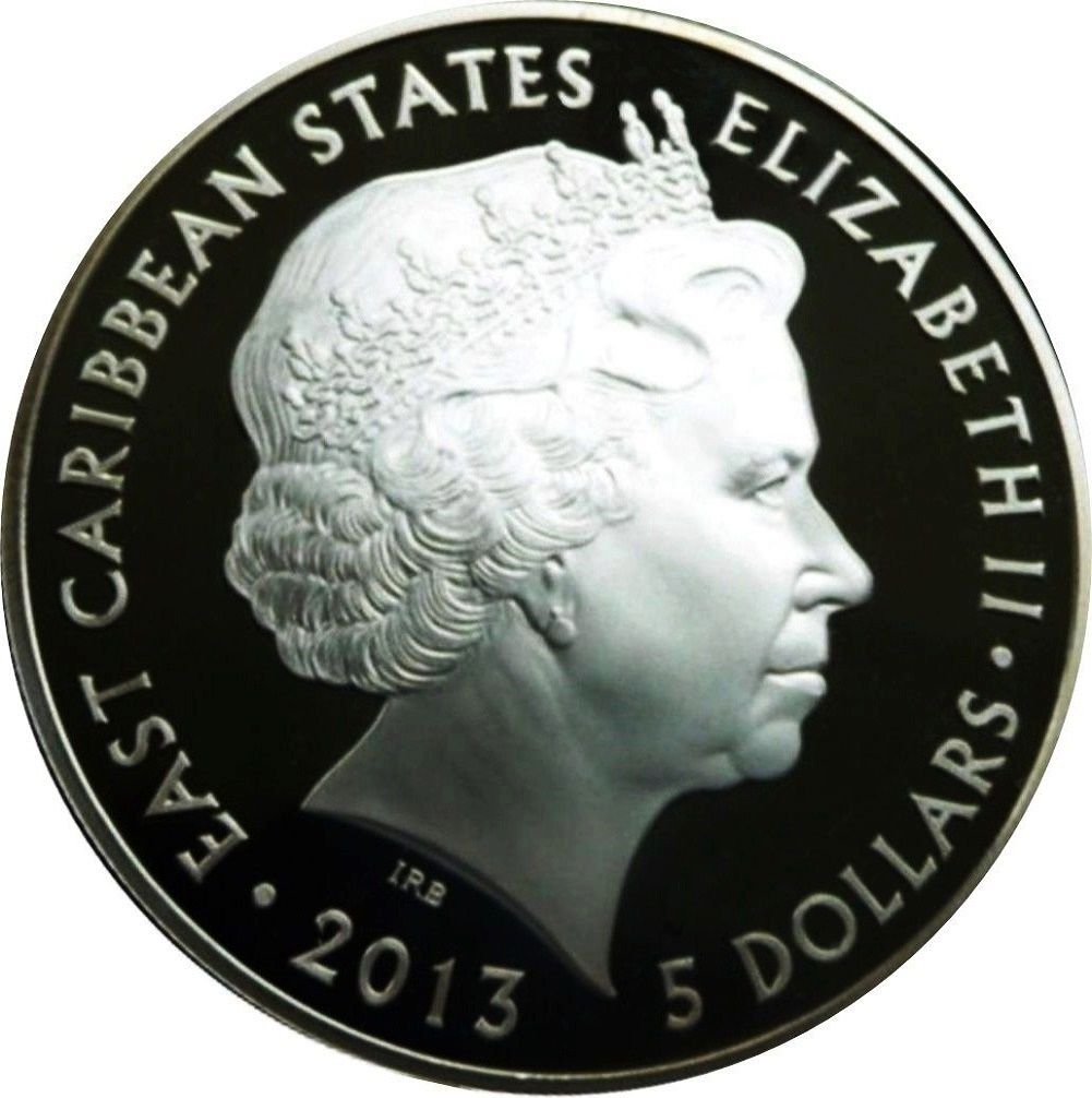 5 доларів — Єлизавета II (зворушлива подія) 2013 – 2013 Східнокарибські держави