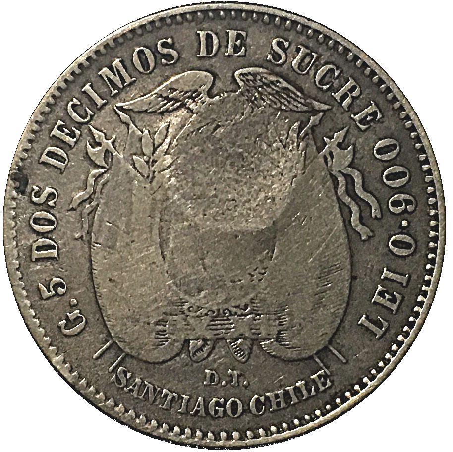 2 Décimos (контрастempel Галапагос) 1884 – 1916 Еквадор