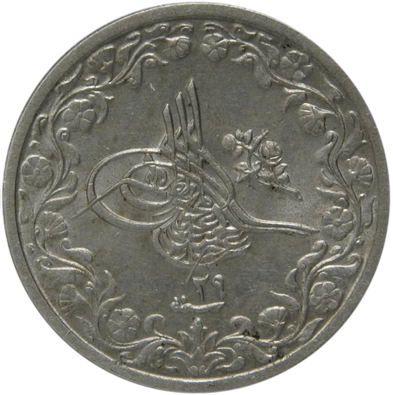 Опис: Центральна цифра ٢ з датою нижче. Арабські літери по краю. ПРИМІТКА: всі реверси з літерами дати ١٢٩٣.