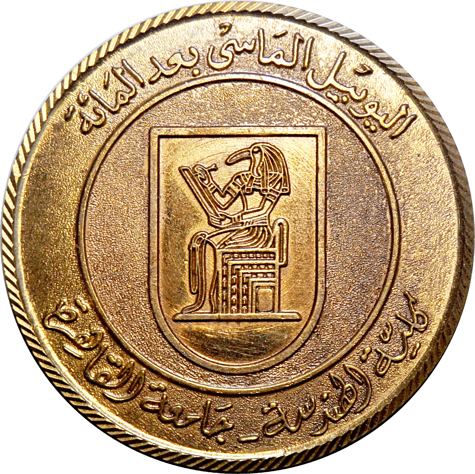 Опис: Логотип Каїрського університету (бог Тот, бог мудрості у стародавніх єгиптян) у центрі.