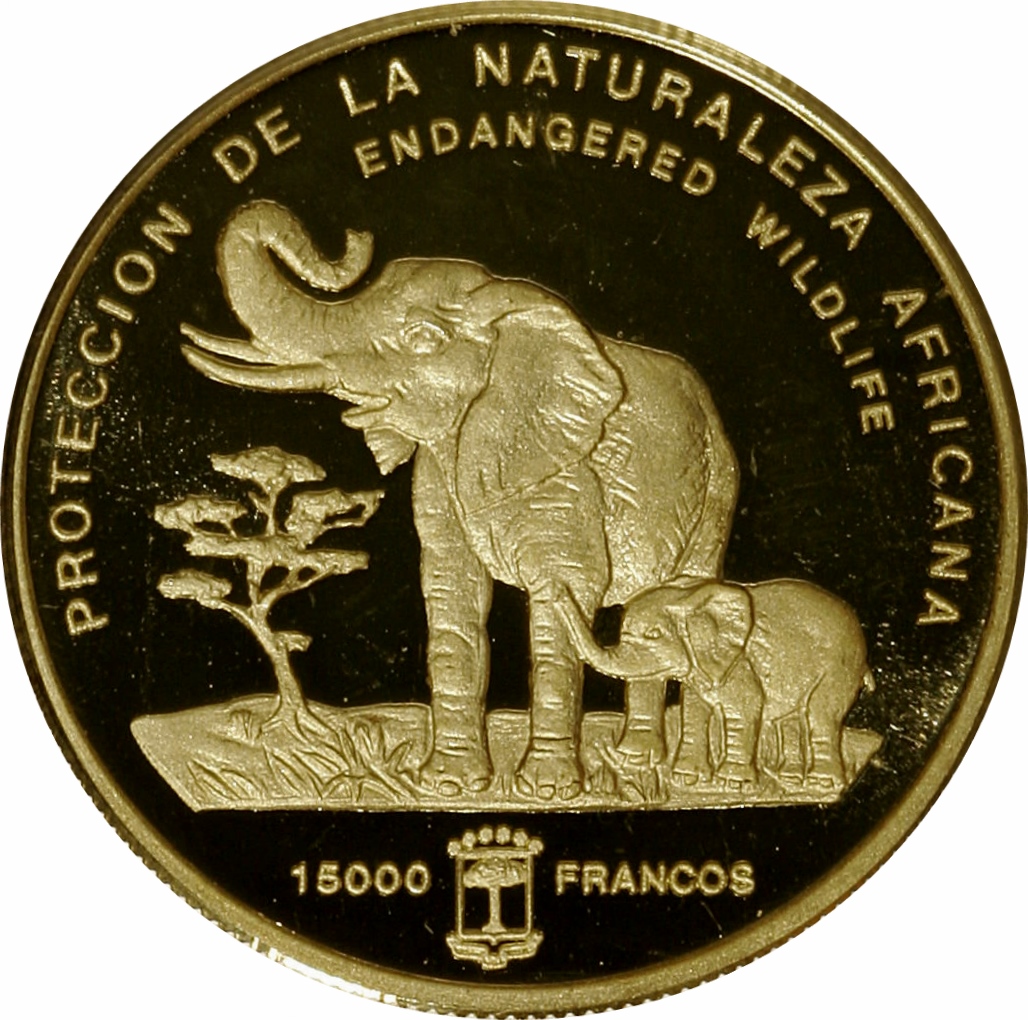 15 000 франків CFA (африканський слон) 1992 – 1992 Екваторіальна Гінея