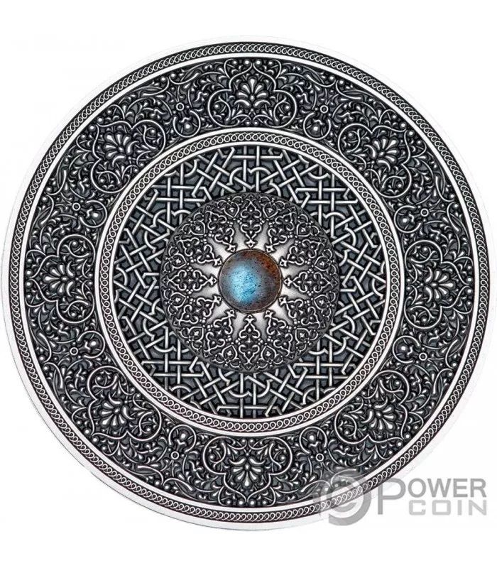 Опис: Складний і детальний візерунок мандали, натхненний турецьким мистецтвом, з дорогоцінним каменем лабрадоритом у центрі.