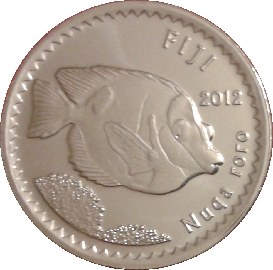 Опис: Двоколірна риба-кролик (Nuqa Roro), Siganus vulpinus, мешкає в тропічних водах західної частини Тихого океану, поширена в коралових рифах, на якій портрет королеви замінено датою праворуч.