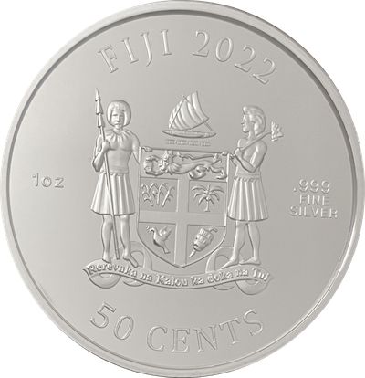 Опис: Герб Фіджі зображує розділений на чотири частини щит із цукровою тростиною, кокосовою пальмою, голубкою з оливковою гілкою та бушелем бананів. Над розділеним на чотири частини щитом зображено лева, що стоїть на задніх лапах і дивиться вперед, тримаючи в лапах стручок какао. Над щитом зображено каное з виносним опором, а з боків його підтримують фігури фіджійців.