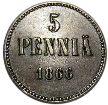 5 пенні — Олександр II 1865 – 1875 Фінляндія