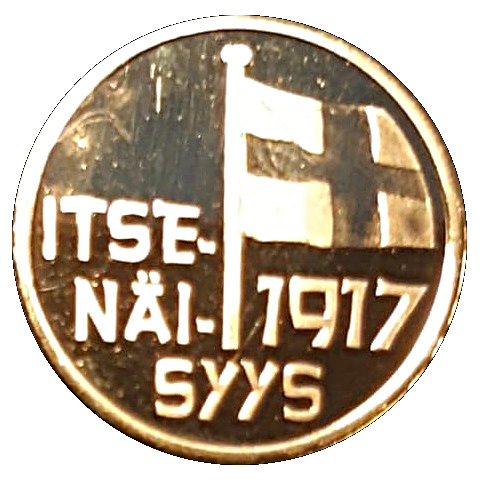 Опис: Прапор Фінляндії та 1917 рік, з текстом ITSE-NÄI-SYYS.