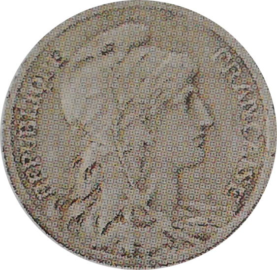 Опис: Одягнений бюст Республіки з довгим волоссям праворуч, в фригійському капелюсі, закріпленому стрічкою; оливкова гілка, що піднімається від бюста і проходить через стрічку капелюха; внизу рельєфний напис DANIEL-DUPUIS.