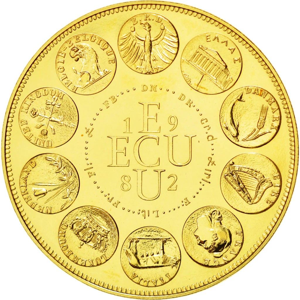 Опис: Десять символів, розташованих по колу, під кожним з яких знаходиться абревіатура назви країн ЄЕС, що беруть участь у Європейській валютній системі та ЕКЮ. У центрі — слово «ЕКЮ» у вигляді хреста та рік 1982.