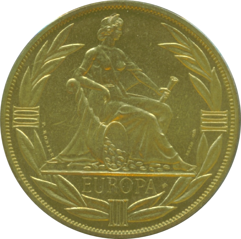 Опис: Сидяча Європа з рогом достатку.