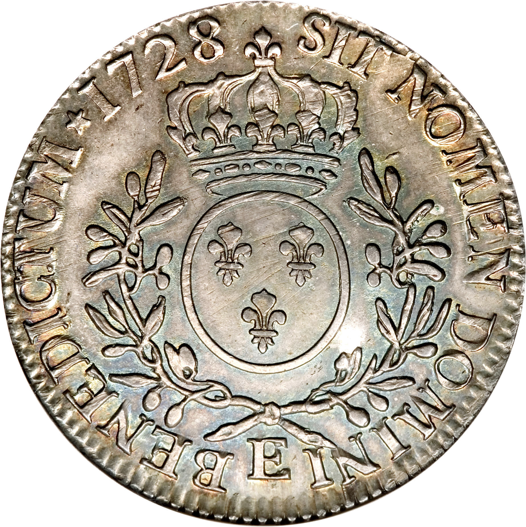 Опис: Зліва — бюст Людовика XV, з непокритою головою, зав'язаною шиєю, у вишитій куртці, на якій висить шнур і хрест ордена Святого Духа. Під бюстом — клеймо майстерні. Напис починається о 19 годині.