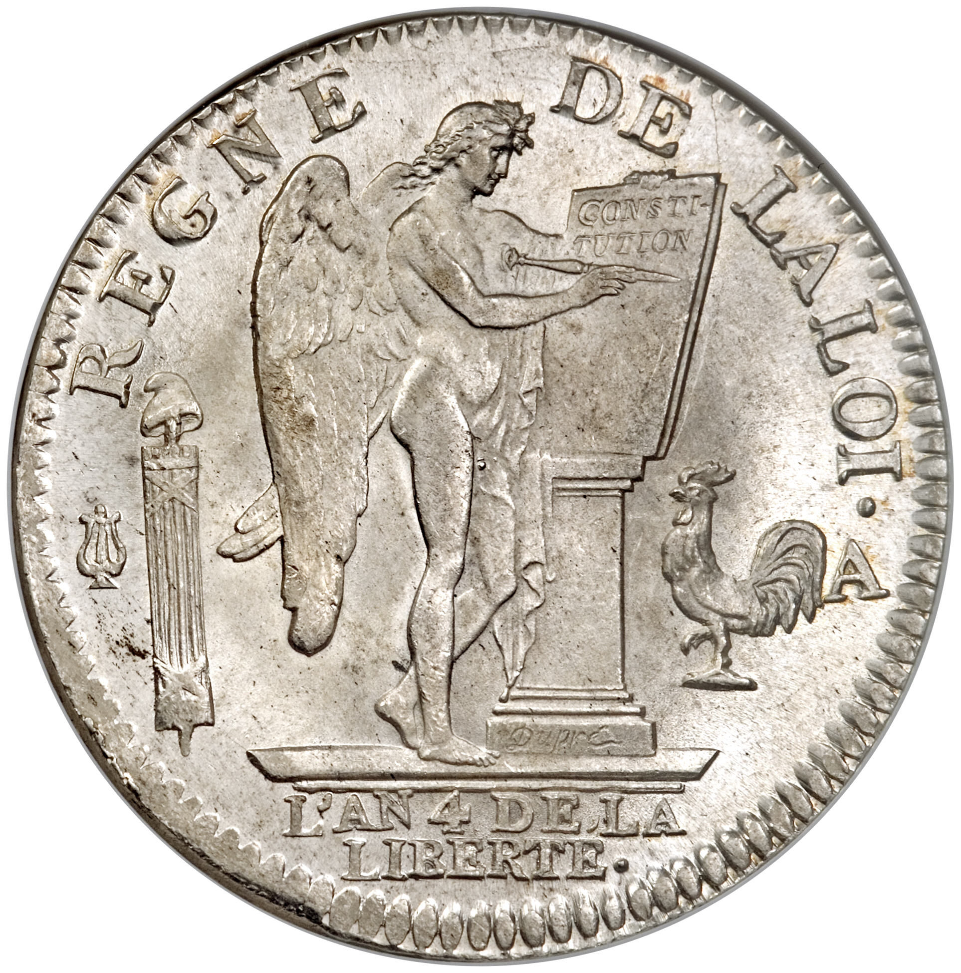 Гурт: Рельєфні написи, флерони між словами. (LA NATION LA LOI ET LE ROI)