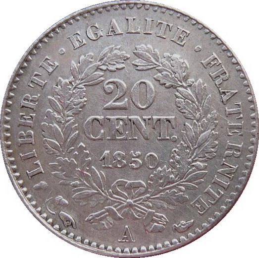 20 сантимів 1849 – 1851 Франція