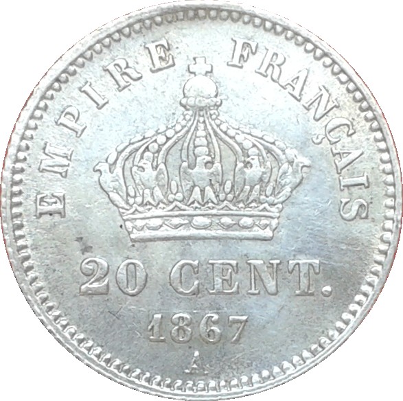20 сантимів — Наполеон III 1867 – 1868 Франція