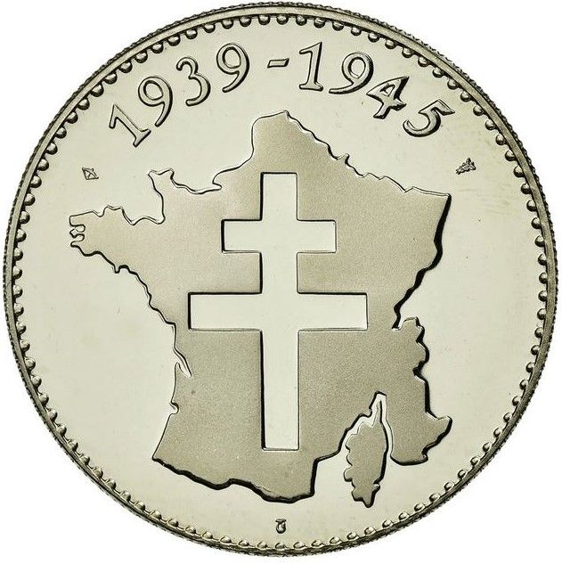 Опис: Карта Франції, прикрашена Лотаринзьким хрестом.