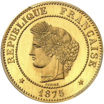 5 сантимів (Epreuve en or de Oudiné) 1875 – 1875 Франція