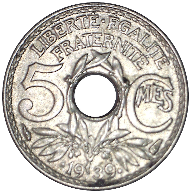 5 сантимів (з крапками навколо дати) 1938 – 1939 Франція