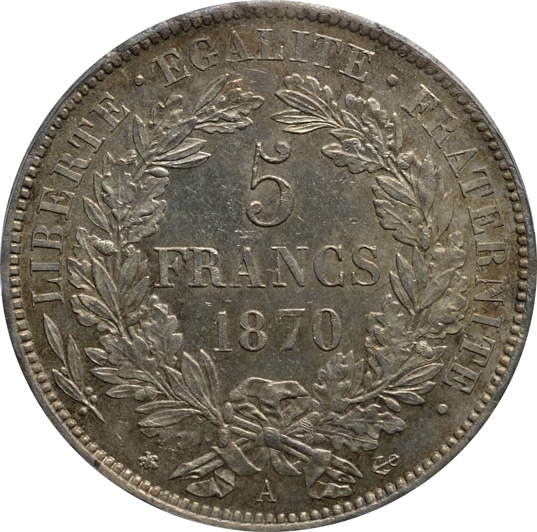 5 франків — Церера (з девізом) 1870 – 1870 Франція