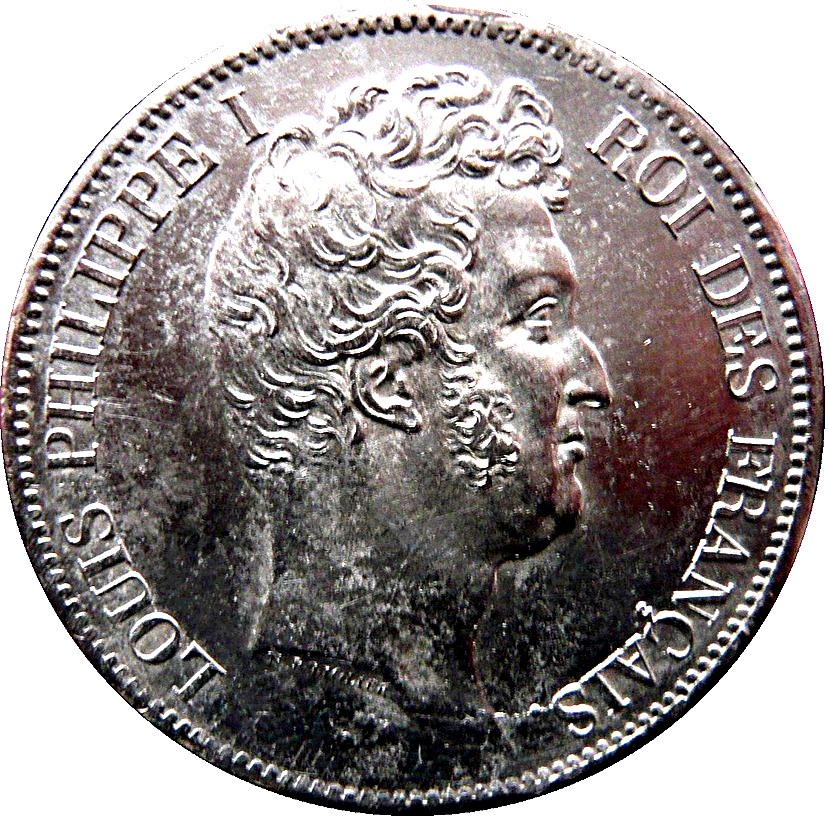 Назва: 5 франків — Луї-Філіпп I (з I — гравіруванням на краю)