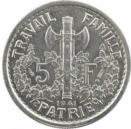 5 франків (зразок Базора, 1-й тип Петен) 1941 – 1941 Франція
