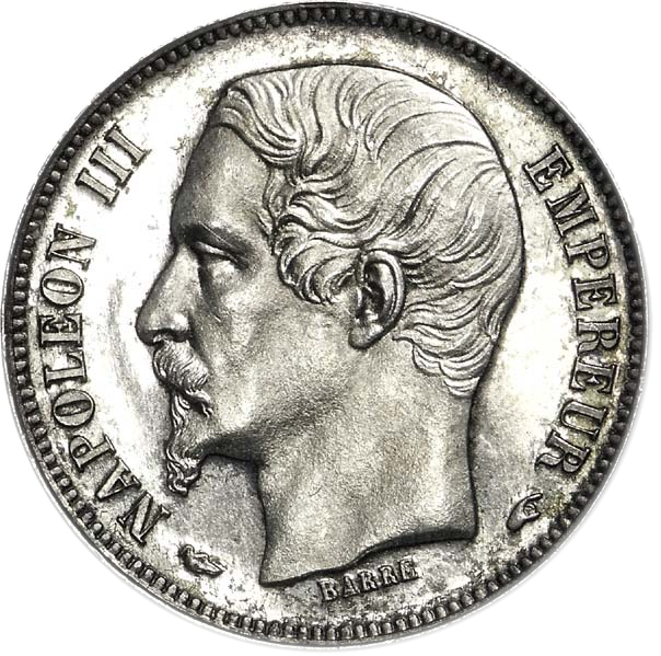 50 сантимів — Наполеон III (велика голова) 1853 – 1853 Франція