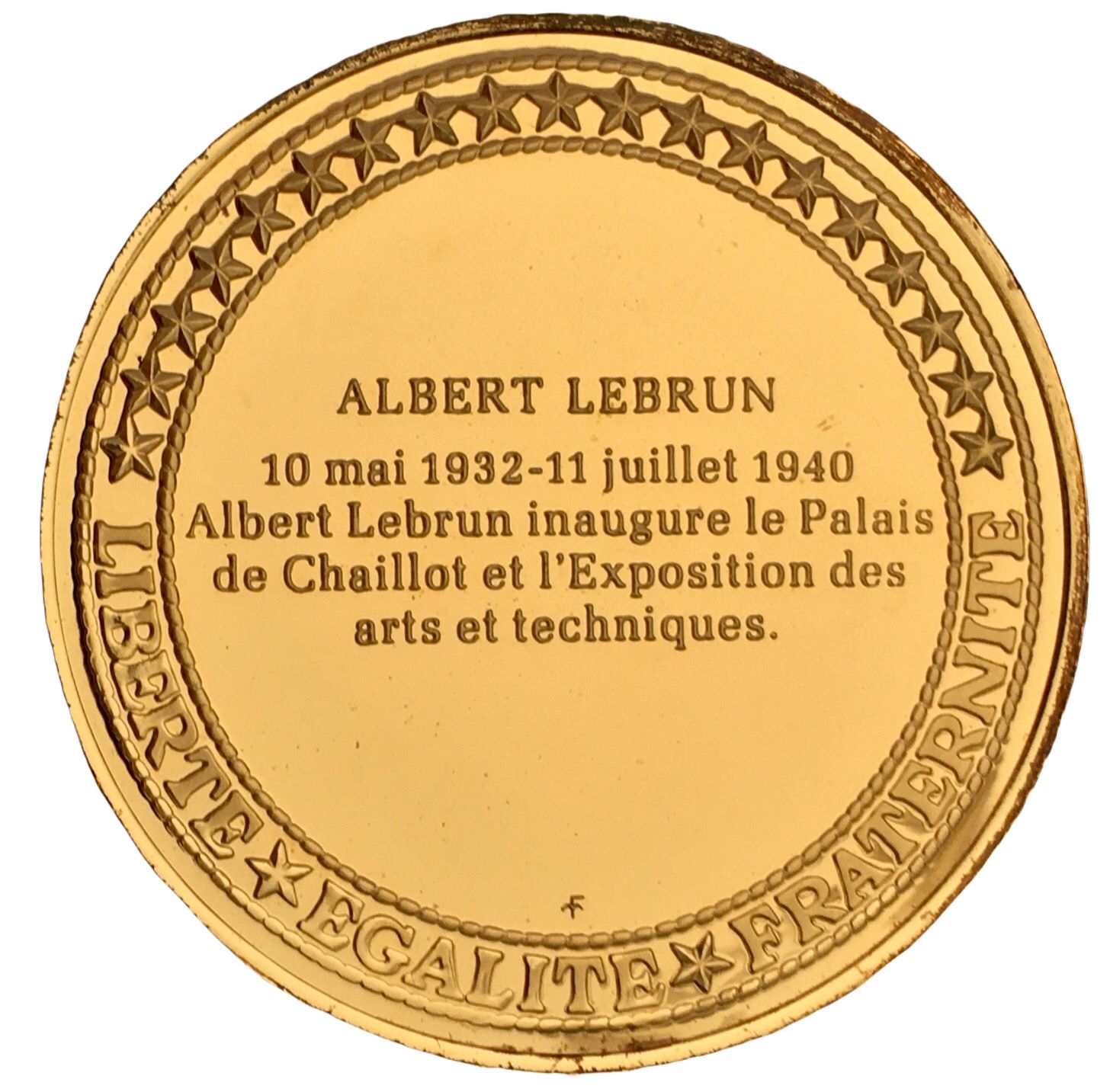 Опис: Центральний текст із датами повноважень президента Французької Республіки, зірки навколо, інший Franklin Mint внизу.