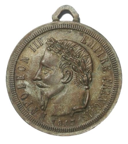 Опис: Наполеон III, голова в лавровому вінку, звернена вліво, напис навколо в рифленому сувої.