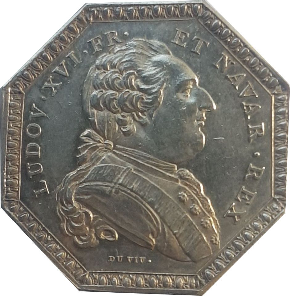 Опис: Одягнений бюст Людовика XVI праворуч, волосся зав'язане за шиєю. Підпис під бюстом