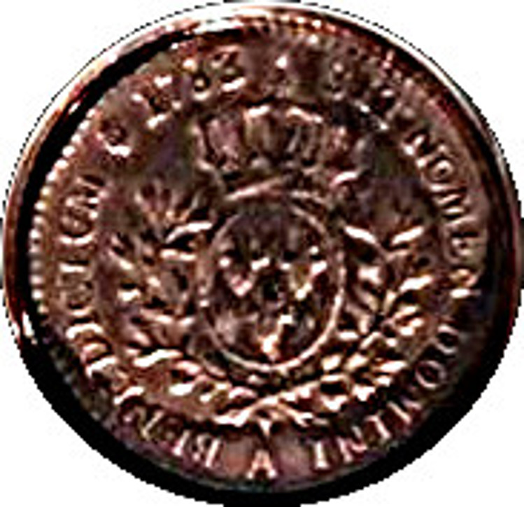 Опис: Французька овальна монета «Еку» з короною, між двома оливковими гілками.