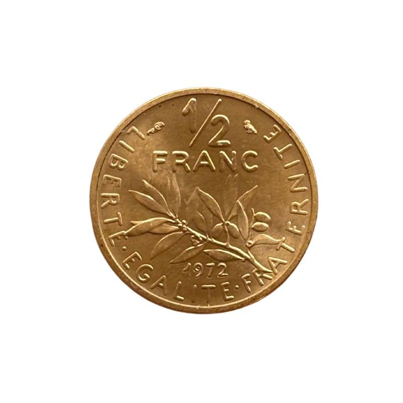 Опис: 1/2 / FRANC в рамці з різних елементів, у двох рядках над оливковою гілкою; нижче, 1973.