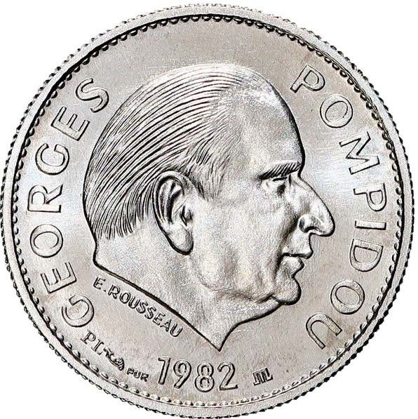 Опис: Портрет президента Жоржа Помпіду. Інший рог достатку від Administration des Monnaies et Médailles (Monnaie de Paris) та інша Лалета.