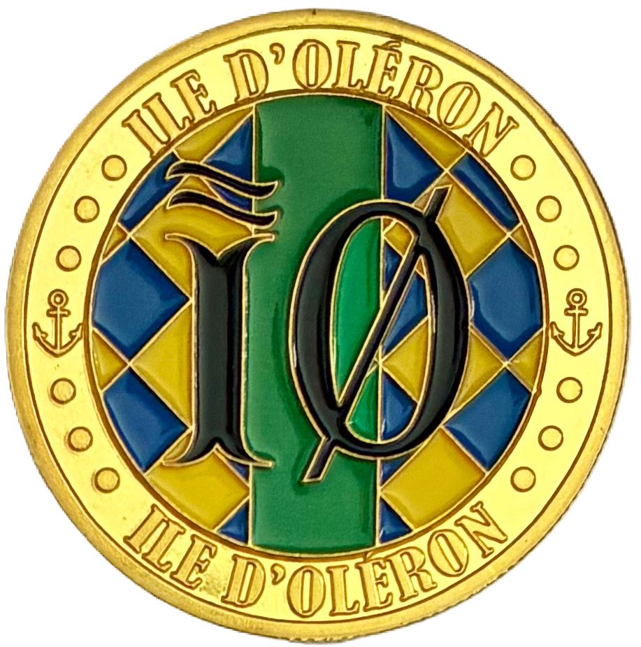Опис: Sigle IØ, символ острова Олерон у центрі. Нижче — прапор острова. Текст оточений двома морськими якорями.