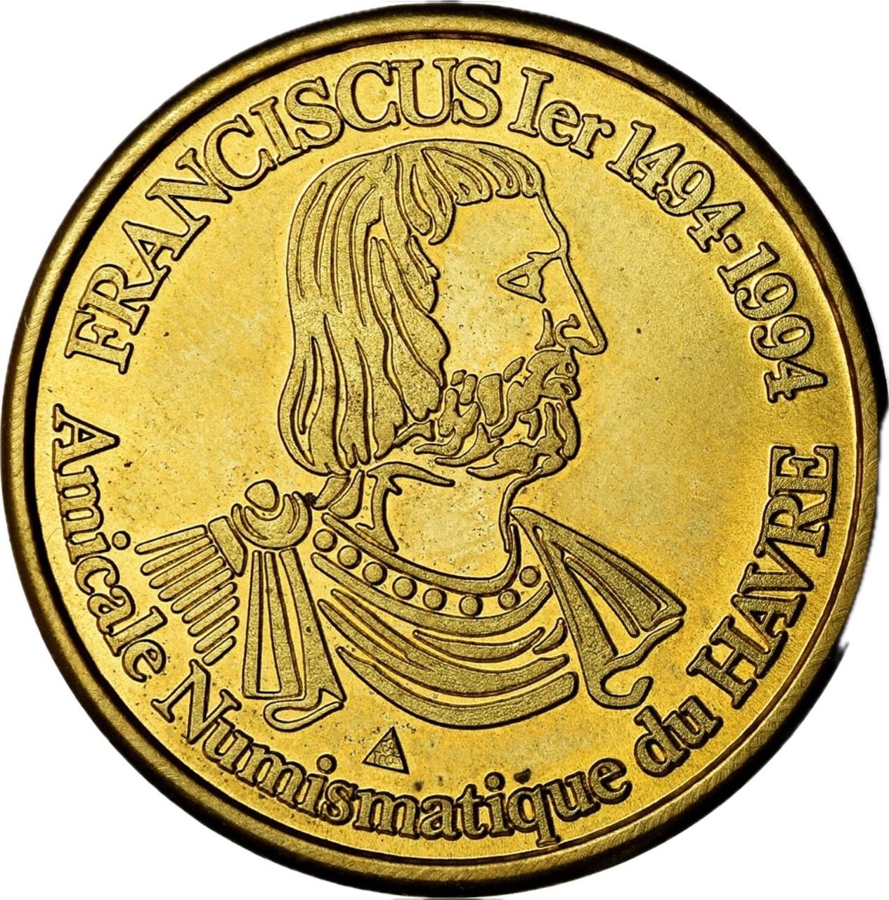 Опис: (fr) Текст по периферії. Погруддя Франциска I у центрі. Трикутний клеймо в нижній частині.