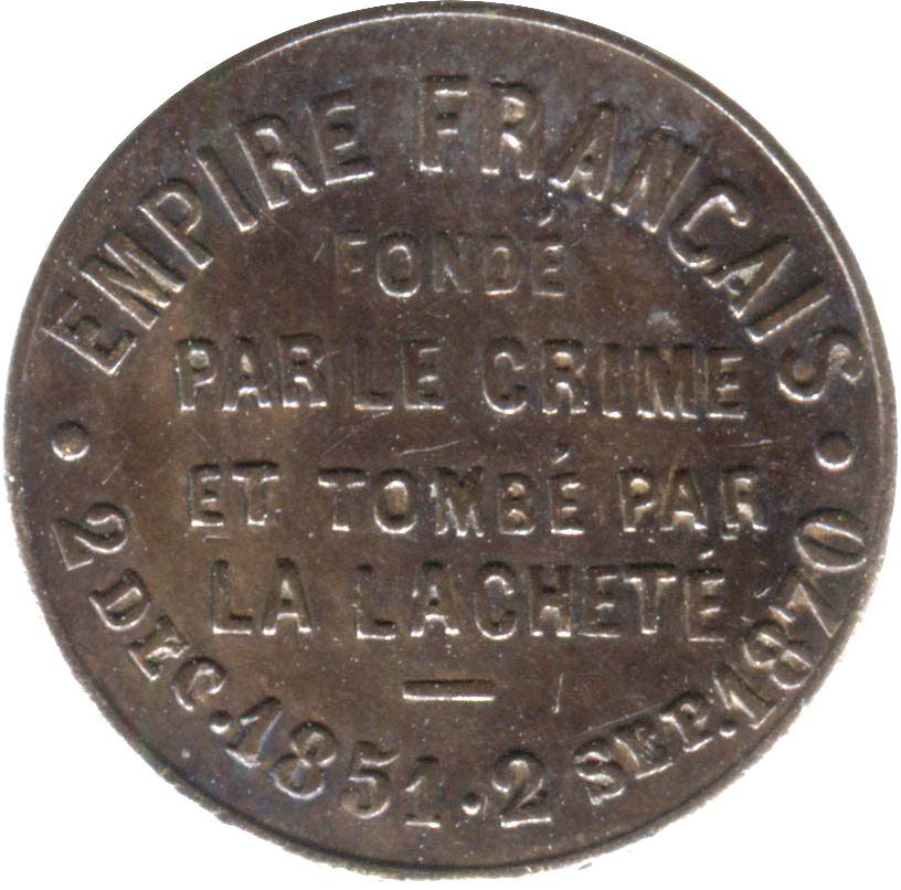 Жетон — Поразка Седана (сатиричний модуль номіналом 2 сантими, Наполеон III Малий)