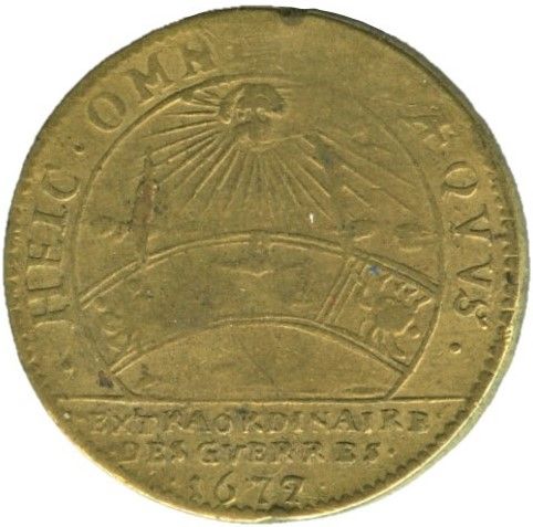Назва: Жетон — Людовик XIV — Extraordinaire des guerres — «Heic Omnibus Equus» Zodiaque