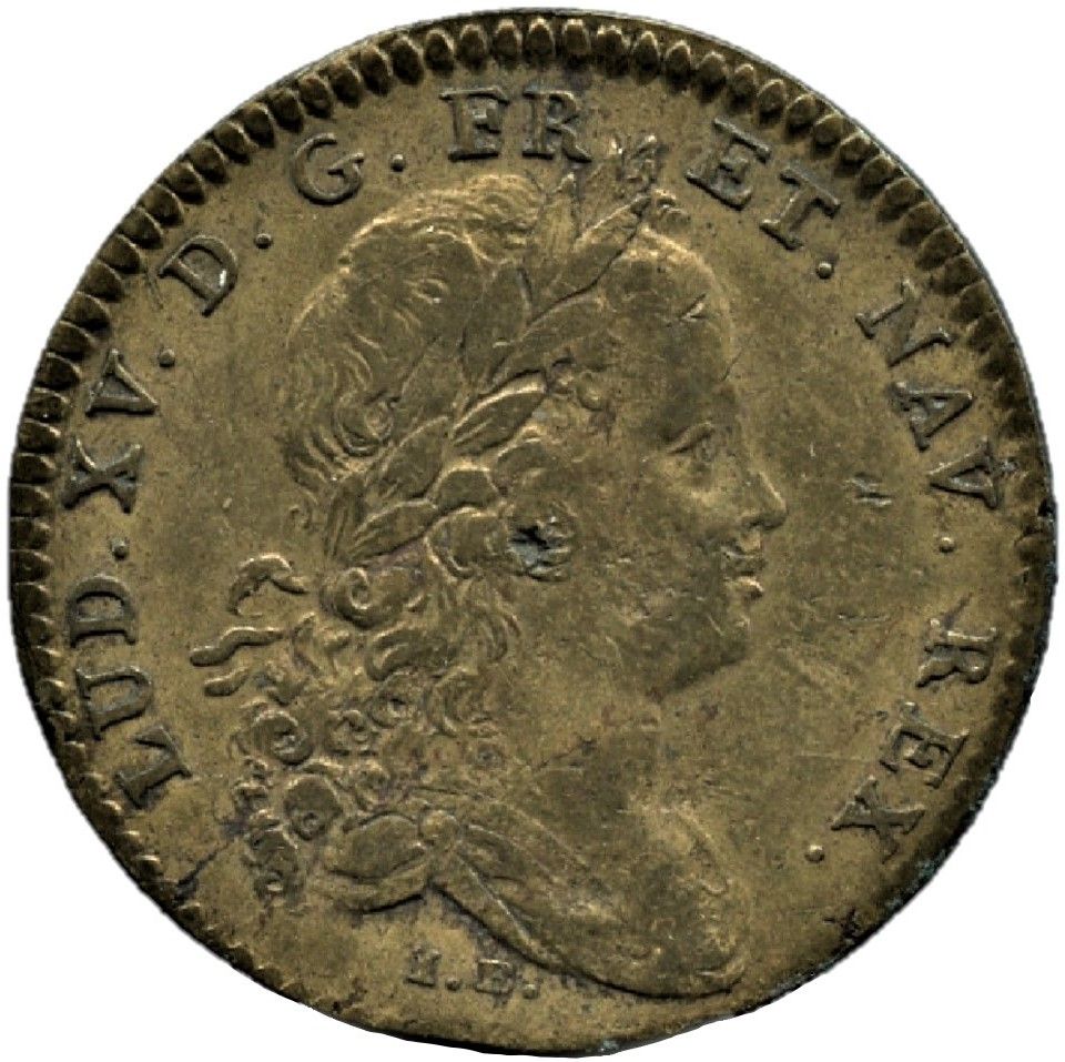 Опис: Повернутий праворуч бюст Людовика XV у дитинстві з лавровим вінком. Ініціали гравера під обрізкою. Навколо — королівський титул.
