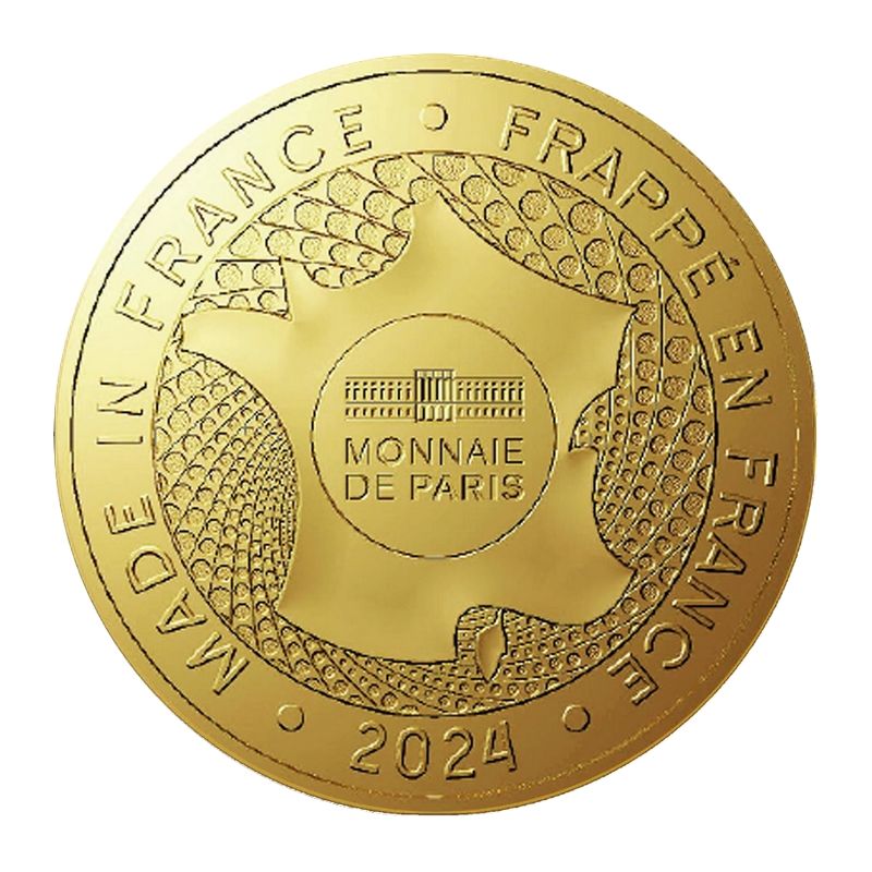Опис: Стилізована карта Франції з логотипом Monnaie de Paris у колі.