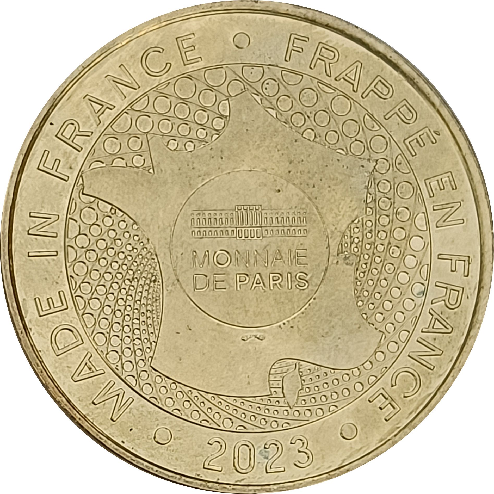Опис: Стилізоване зображення Франції з логотипом Monnaie de Paris всередині кола.