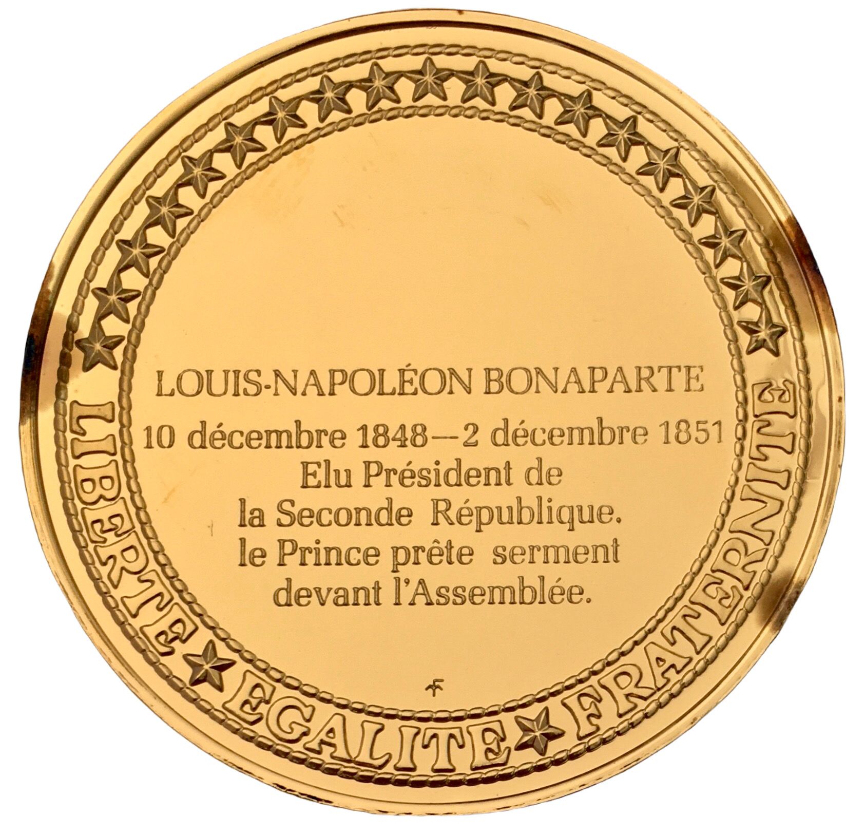 Опис: Центральний текст із датами повноважень Президента Французької Республіки, зірки навколо, інший Franklin Mint внизу.