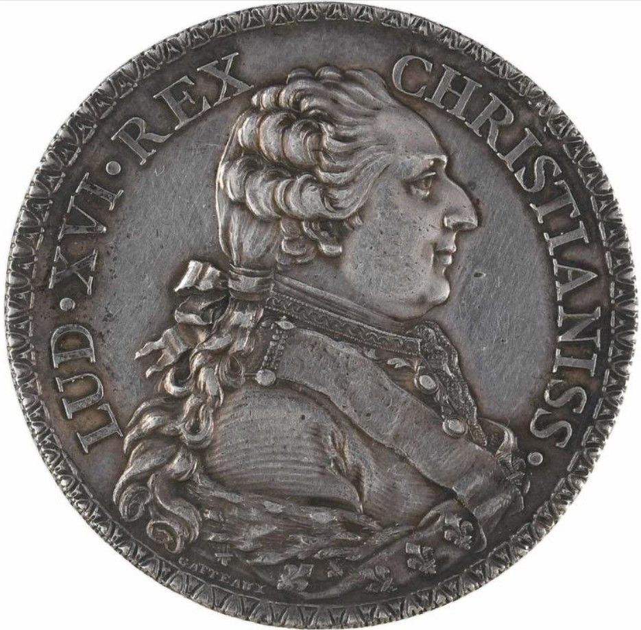 Опис: Великий, повністю одягнений бюст Людовика XVI, з великим орденом праворуч; нижче — підпис GATTEAUX.