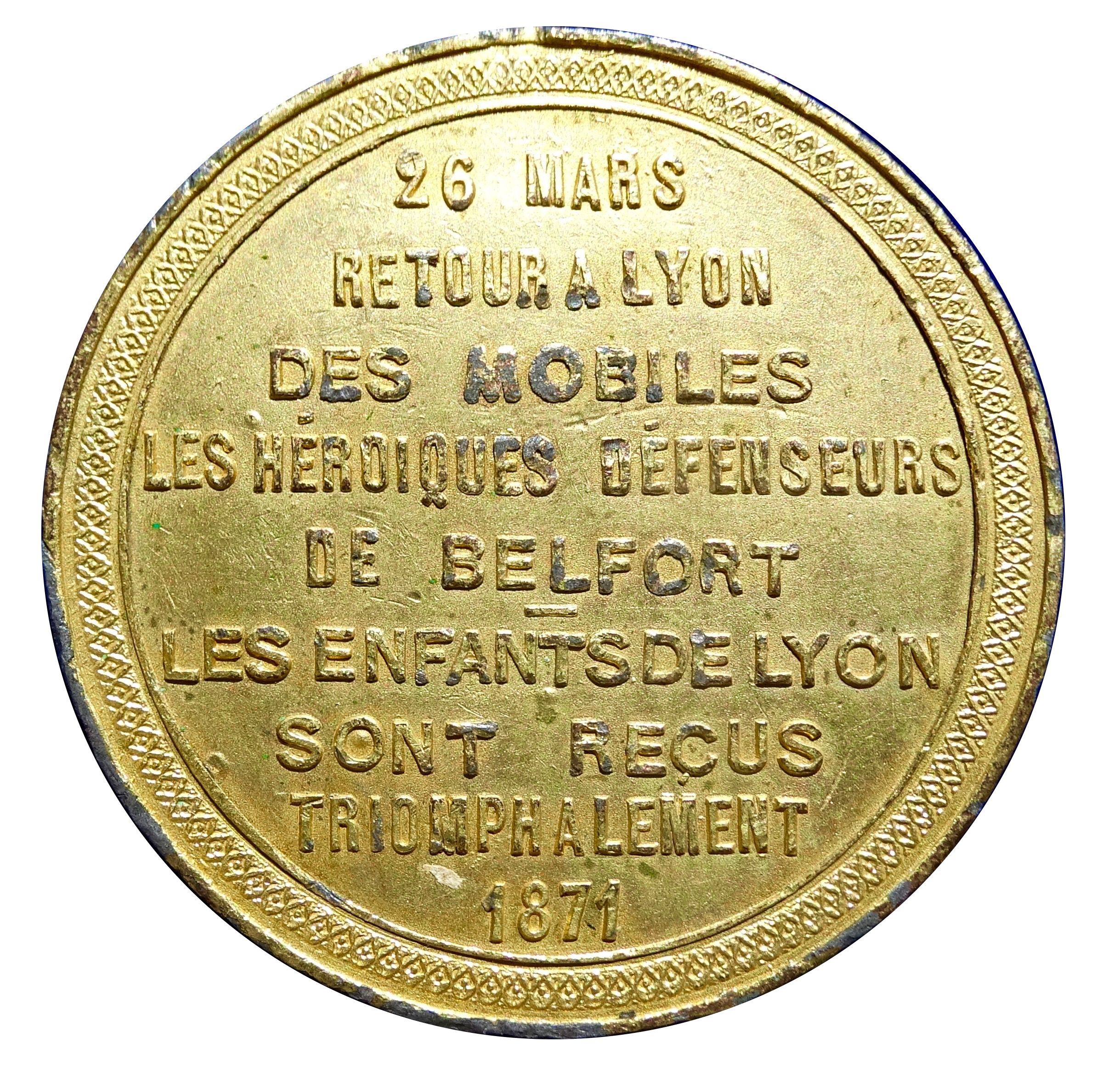 Ліон, медаль на честь повернення захисників Бельфора, Ельзас